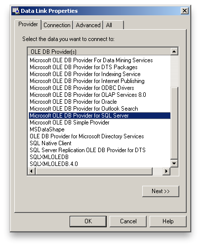 From the description, this may be an issue caused by the ODBC driver for SQL Server (your connection string appears to use the "Microsoft OLE DB Provider for ODBC Drivers"). Instead of creating an ODBC DSN entry in the ODBC Data Sources, can you please change your database connection string to use the "Microsoft OLE DB Provider for SQL Server" instead (see screenshot)? This will bypass the ODBC DSNs, and will allow you to specify directly the SQL connection settings. Alternatively, you could use a UDL file to specify the connection. However, in the UDL file please make sure you select the OLE DB Provider for SQL Server to avoid causing the same issues. There is a sample UDL file for SQL Server you can use as a template to customize in the \SpamFilter\database folder. ![]() |